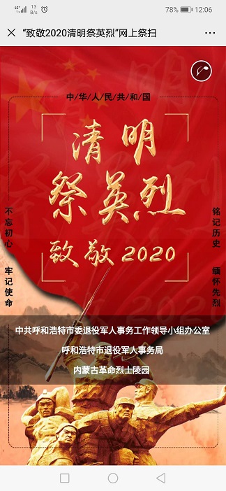 为深入贯彻习近平总书记关于防控新冠肺炎疫情英烈褒扬的重要指示精神,在坚决打赢疫情防控阻击战前提下,有序开展烈士祭扫活动。以坚持避免现场祭扫聚集为主要目标,此次活动由各党小组组织,通过登录退役军人事务部门户网站、中华英烈网和市“敬2020清明祭英烈”活动二维码及其他新闻媒体平台进行网上祭扫活动,并以视频会议的方式传达学习《城发公司党委关于组织学习中纪委监委深化治理突出问题巩固拓展作风实效一文的通知》和《关于在疫情防控形势下抓好清明节正风肃纪工作的通知》。