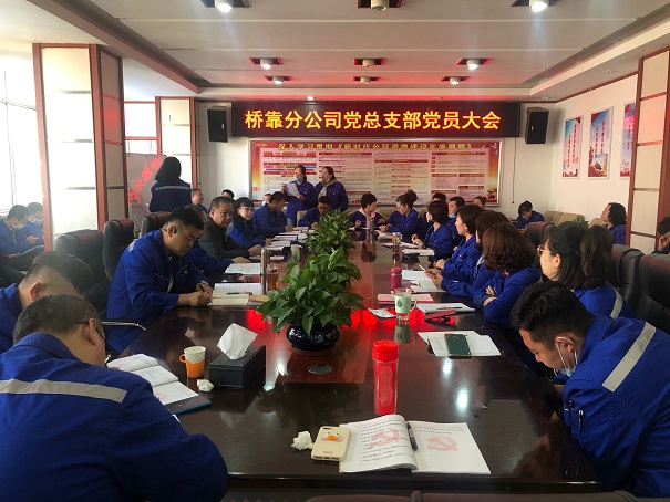 5月26日上午,桥靠分公司党总支部组织党员、预备党员、发展对象、积极分子共58人在行政楼三楼会议室召开党员大会。城发公司总经理、派驻党委委员吕德育参加此次会议,党总支部书记赵怡春主持。