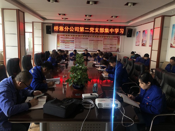 10月27日下午,桥靠分公司第二党支部组织党员、预备党员、发展对象、积极分子在三楼会议室进行集中学习。