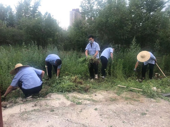 此次实践活动,主要针对赛罕区市民服务中心院外南停车区域蒿草植物进行铲除。除蒿草现场,有的挥舞铁锹、有的使用镰刀尽力将蒿草连根拔起,大家充分发扬不怕苦不怕累的实干精神,共清除蒿草面积约500平方米,极大消除了蒿草带给居民的过敏困扰,同时也为建设宜居家园、改善辖区环境做出积极贡献。