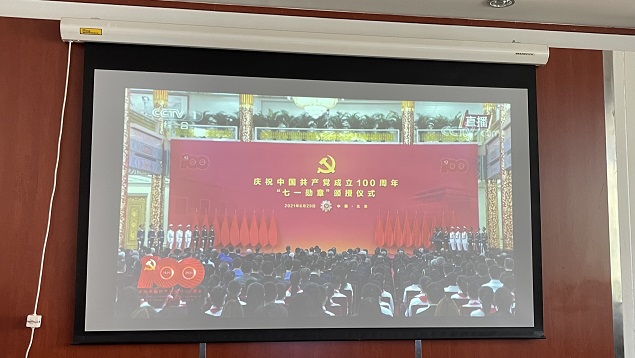 集中学习后,组织党员现场观看了“七一勋章”颁授仪式。在中国共产党成立100周年之际,以中共中央名义首次颁授“七一勋章”,隆重表彰一批为党和人民作出杰出贡献、创造宝贵财富的党员,展示功勋模范和先进典型的精神风范,更激发我们共产党人的荣誉感,激励着每一位共产党员始终把高尚的信仰,作为奋进的动力,同心向党,创造出不负历史、不负人民、不负时代、不负英雄、不负伟大祖国的崭新业绩。