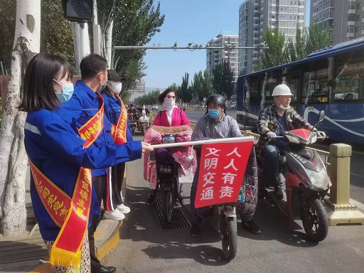 为加强广大居民的交通安全意识,助力全国文明城市创建,最大限度的预防和减少道路安全事故的发生。5月24日上午,三合村分公司第二党支部联合新城区交管大队八一市场中队,在呼伦路与爱民街交叉路口联合开展“提高安全意识,共建文明城市”主题党日活动,分公司第二支部党员、职工共计11人组成志愿服务队,参加本次活动。