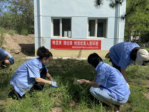 7月8日,桥靠分公司第一党支部组织党员、预备党员、发展对象、积极分子重点对桥靠分公司厂区院内及设备库房外蒿草、垃圾进行集中清除活动。