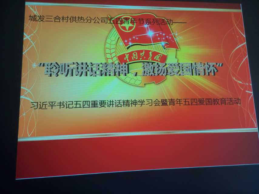 三合村供热分公司团支部于5月30日下午组织青年团员召开了"聆听讲话精神,激扬爱国情怀"习近平总书记“五四”重要讲话学习会。